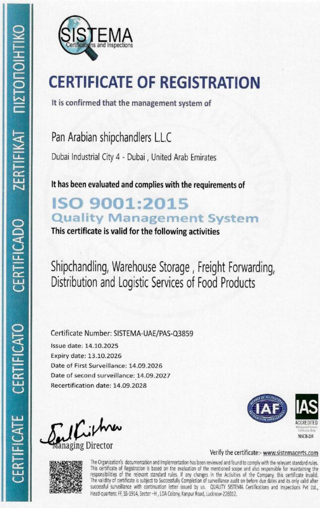 Established in 1997, Pan Arabian Ship Chandlers LLC, also known as PANAB, has been a part of the marine industry for over 25 years.
